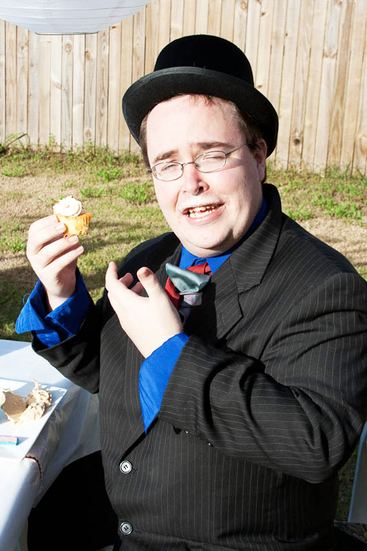The Mad Hatter (played by talented Gold Coast actor/writer Gareth Gredig), enjoying a cupcake.